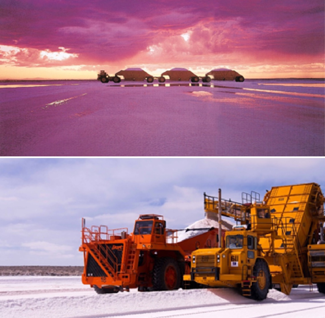 ゲレロネグロ塩田では、塩分濃度の高いコルテス海の海水を塩田に引き込み、強い太陽の日差しと、安定した風に恵まれた気候を最大限に活かして製塩しており、台風など荒天の影響を受けにくいことが、安定した製塩と計画的な供給を可能にしています。